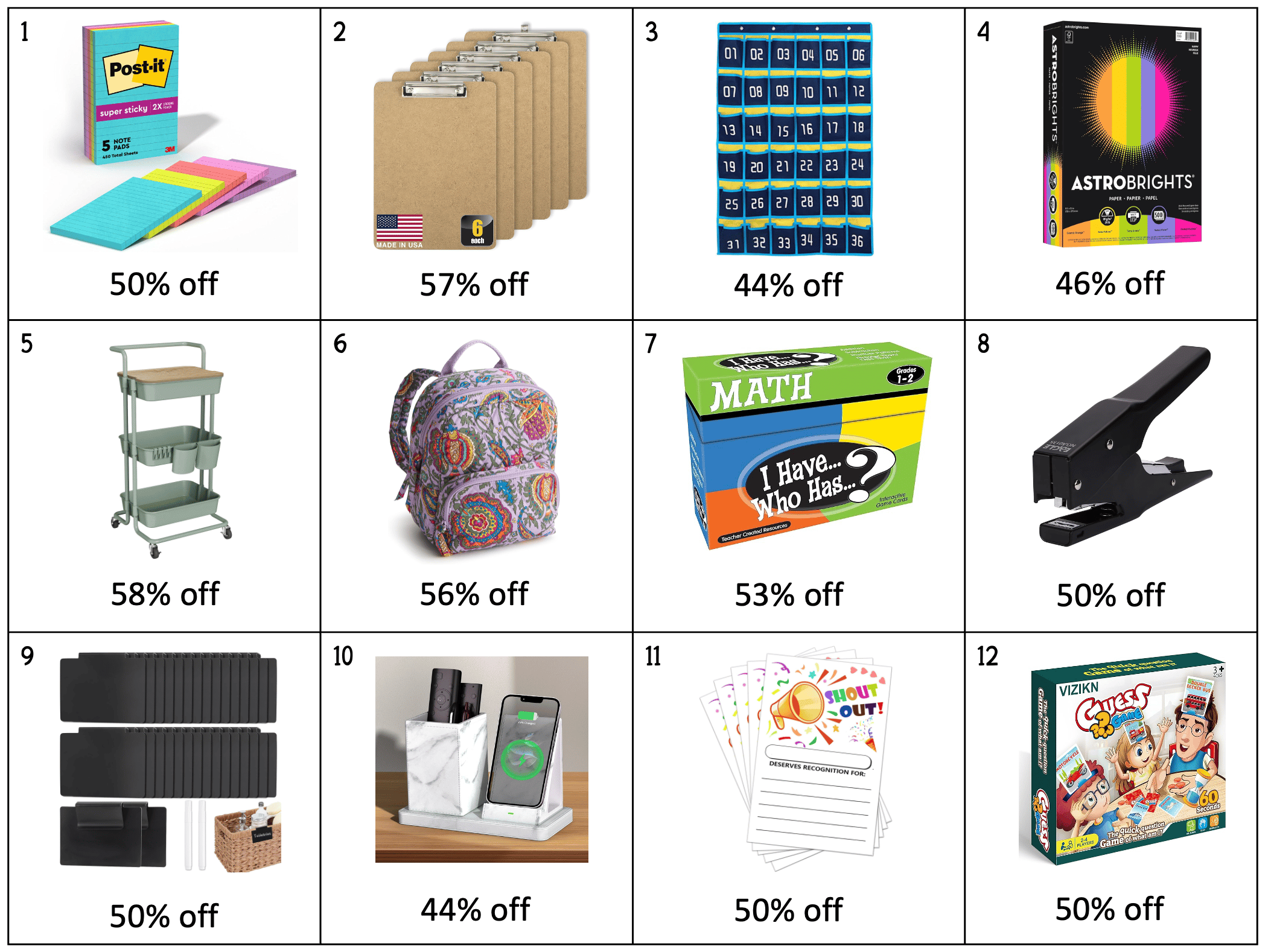 Hey Reader, Here's this week's list of Amazon deals for the classroom. The percentage off is current as of today: My favorite deal this week is the Astrobrights paper! It is so useful in the classroom. I love to print worksheets on it and then put them in page protectors to use in centers with dry erase markers. For some reason, working on bright, colorful paper seems a lot more fun for kids. I also really like #8, the "Completed Together" stamp. If you have students with IEPs or even gen-ed...